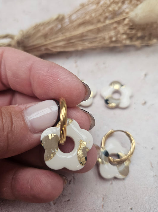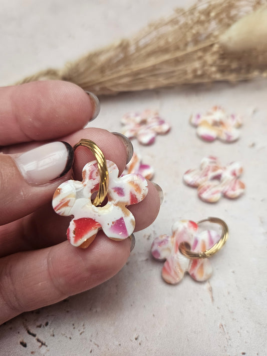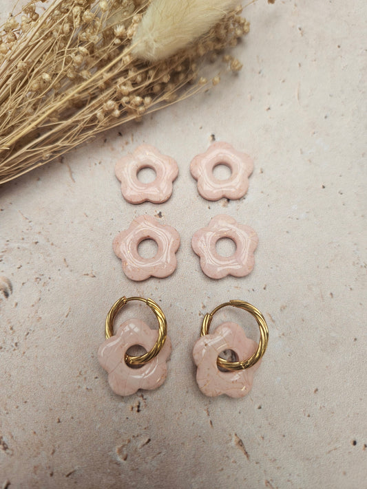 Boucles oreilles interchangeables - COLLECTION FALL IN LOVE - ZÉLIE FEUILLE ROSE MARBRÉ