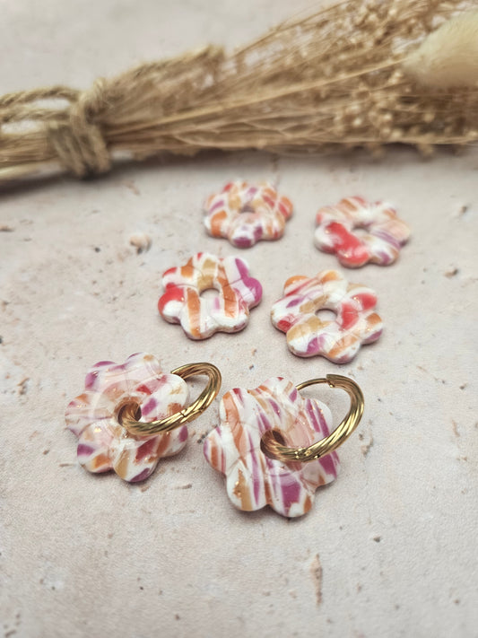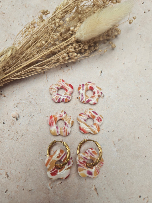 Boucles oreilles interchangeables ZELIE - COLLECTION SUMMER - TRANSLUCIDE ABRICOT MARBRE