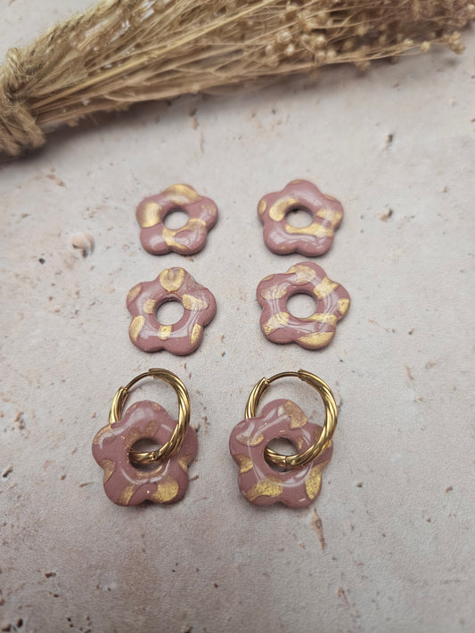 Boucles oreilles interchangeables - COLLECTION FALL IN LOVE - ZÉLIE VIEUX ROSE LEOPARD DORÉ