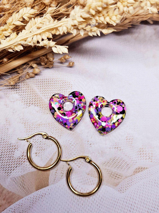 Boucles oreilles AMBRE interchangeables cœur PAMPILLE / créole femme en Acier Inoxydable - ROUGE MULTI COULEURS