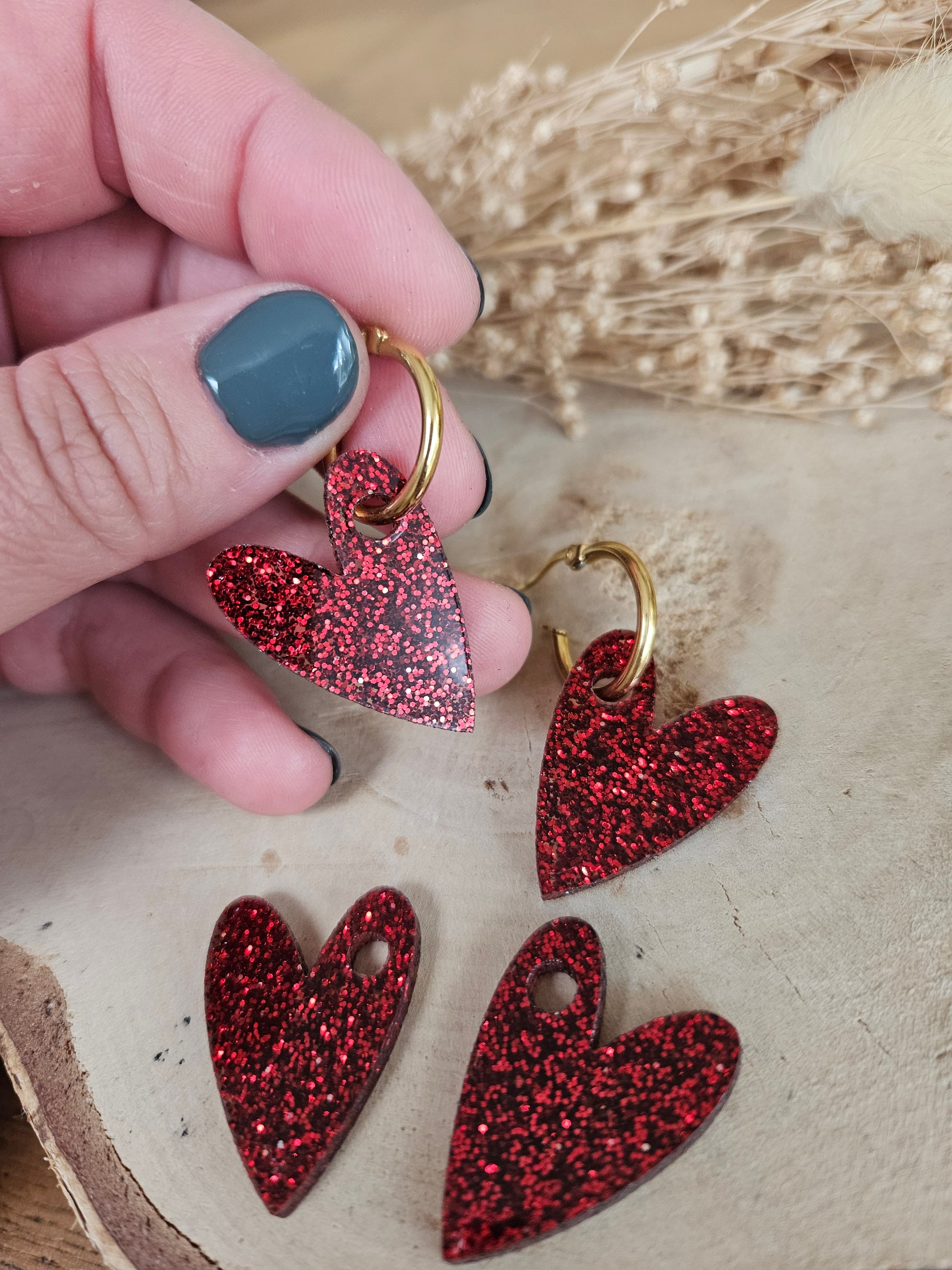 Boucles oreilles AMBRE interchangeables cœur PAMPILLE / créole femme en Acier Inoxydable - rouge paillète