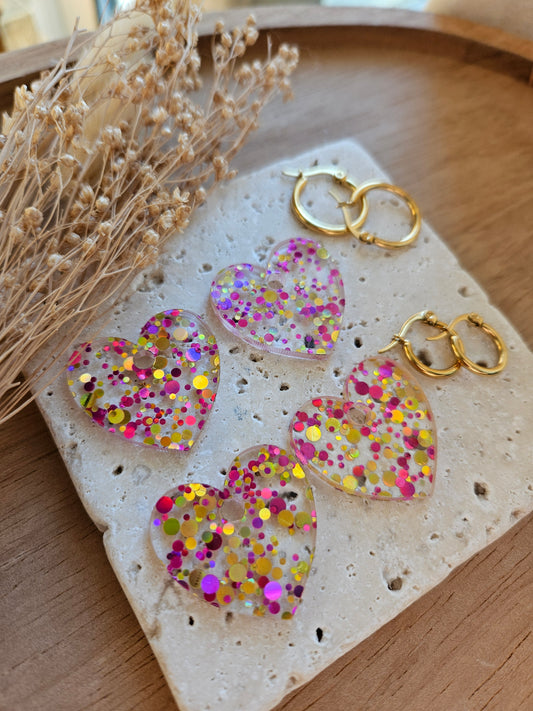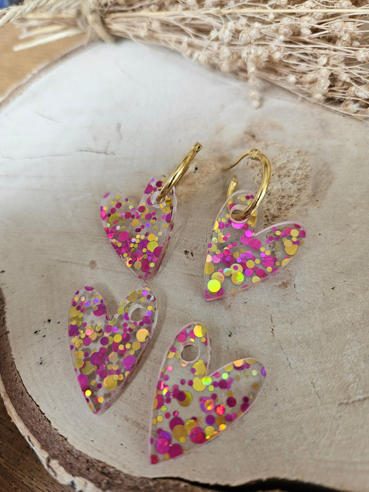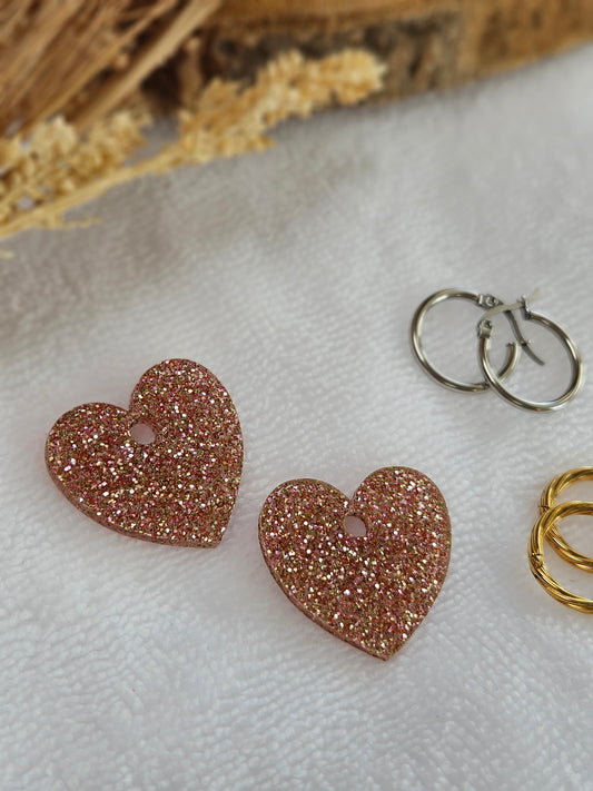 Pampilles interchangeables - par 2 - Collection Saint Valentin - LISETTE - Réversible rose paillette & rose nacré