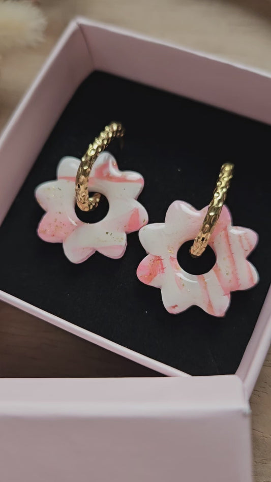 Pampilles interchangeables - par 2 -DROP OCTOBRE - MARGOT MARBRE ROSE