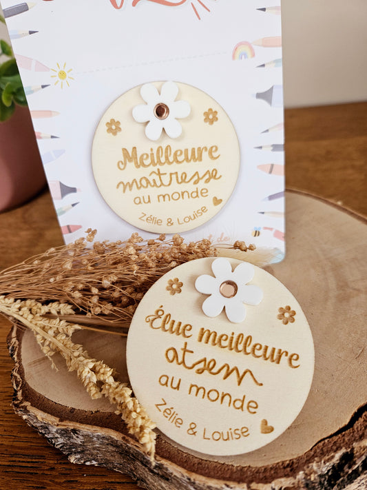 Magnet bois marguerite - fin année scolaire - MERCI maîtresse atsem nounou