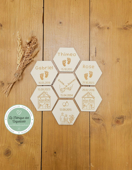 Hexagone étape / carte etape / decoration murale / magnet / famille amour mariage souvenir naissance bébé cadeau personnalisé
