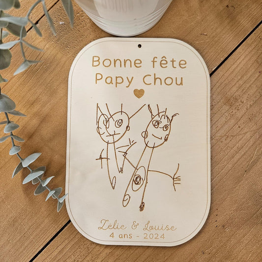 Cadre / plaque personnalisé - dessin enfant - cadeau femme - maman nounou mamie papy papa - fête - noël - cadeau enfant