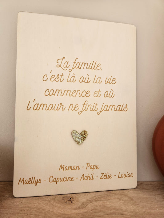 Affiche / cadre / plaque / famille amour citation décoration intérieur cadeau marié mariage st valentin couple cœur personnalisée