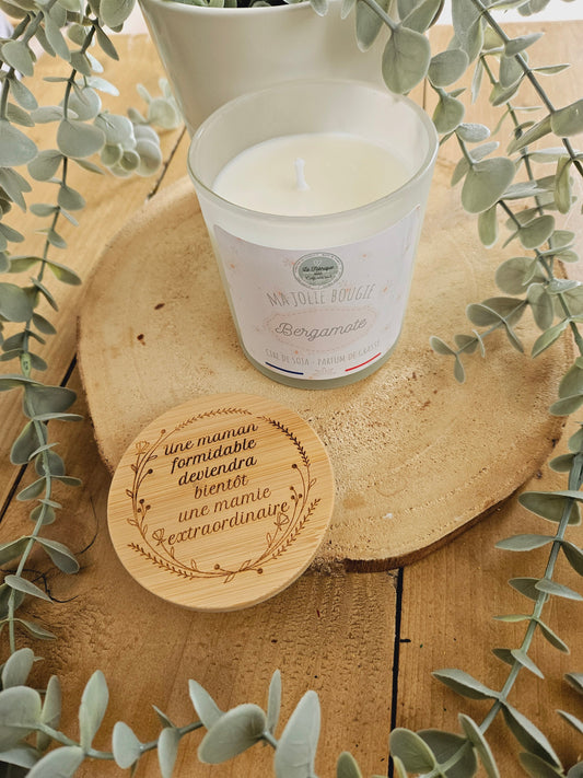 Bougie personnaliséE - couvercle bois - gravure - personnalisé - maitresse mamie nounou maman cadeau femme