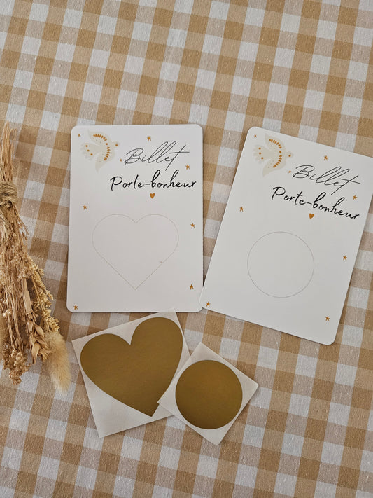 Carte à gratter - billet porte bonheur - à personnaliser - carte de voeux annonce grossesse annonce mariage - cadeau anniversaire demande mariage marraine parrain mamie papy témoin
