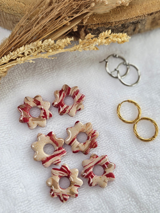 Pampilles interchangeables - par 2 - Collection Noël "Let it Shine" - LISETTE - ROUGE ET IVOIRE MARBRÉ