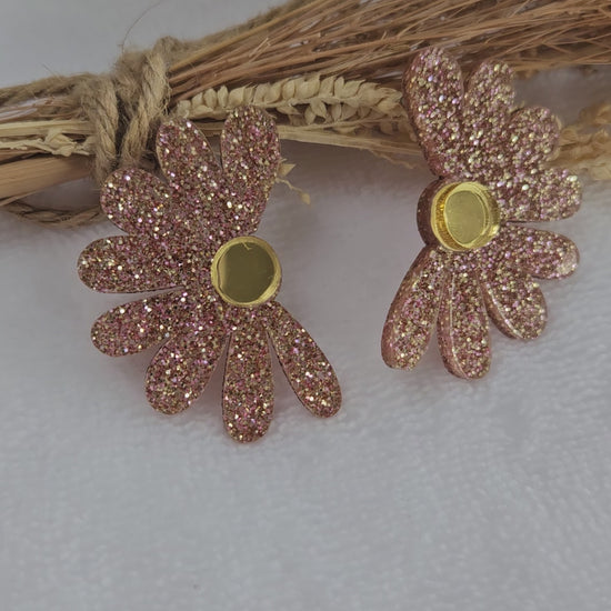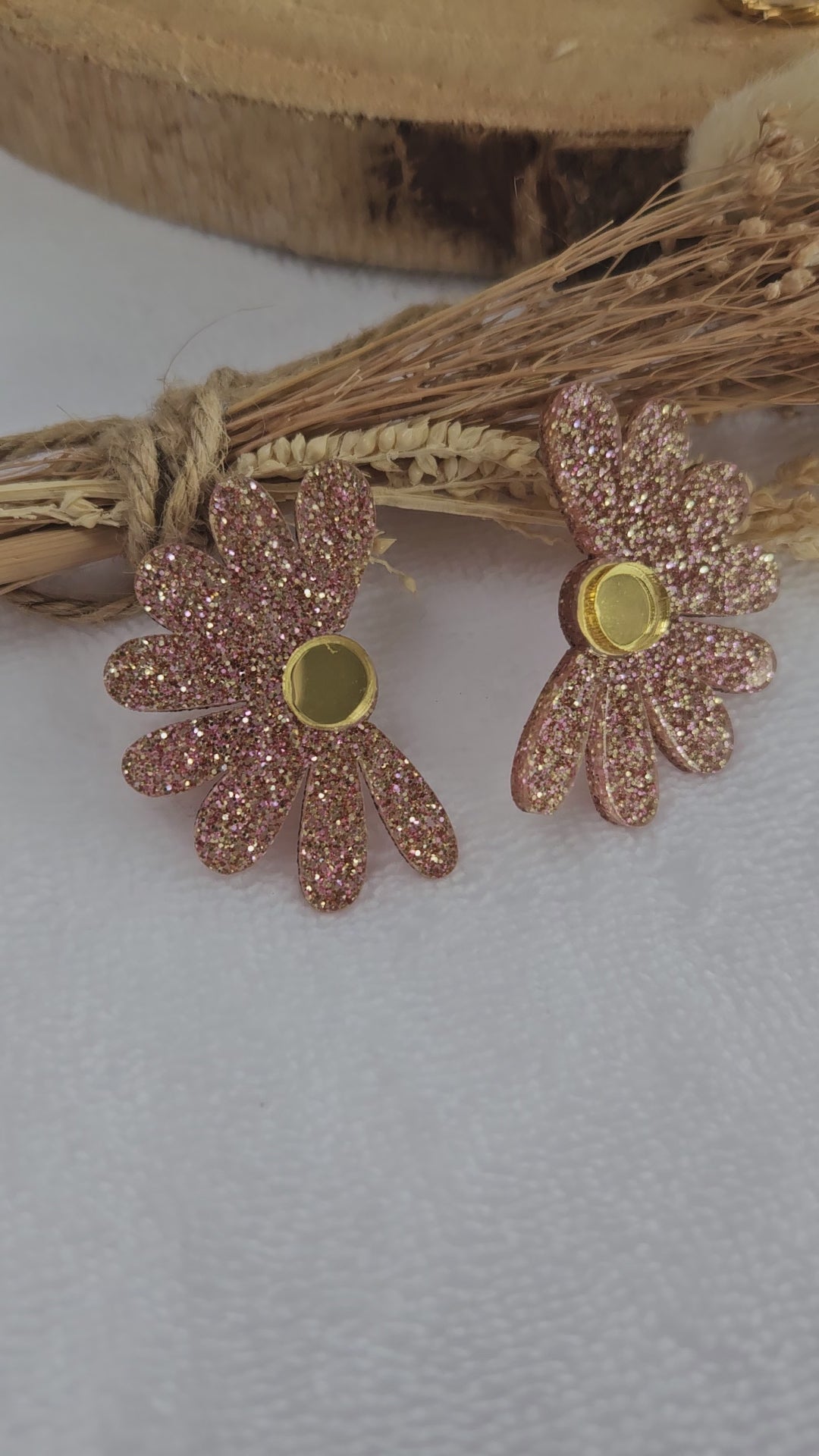 Boucles d'oreilles - COLETTE - Champagne paillette et or miroir