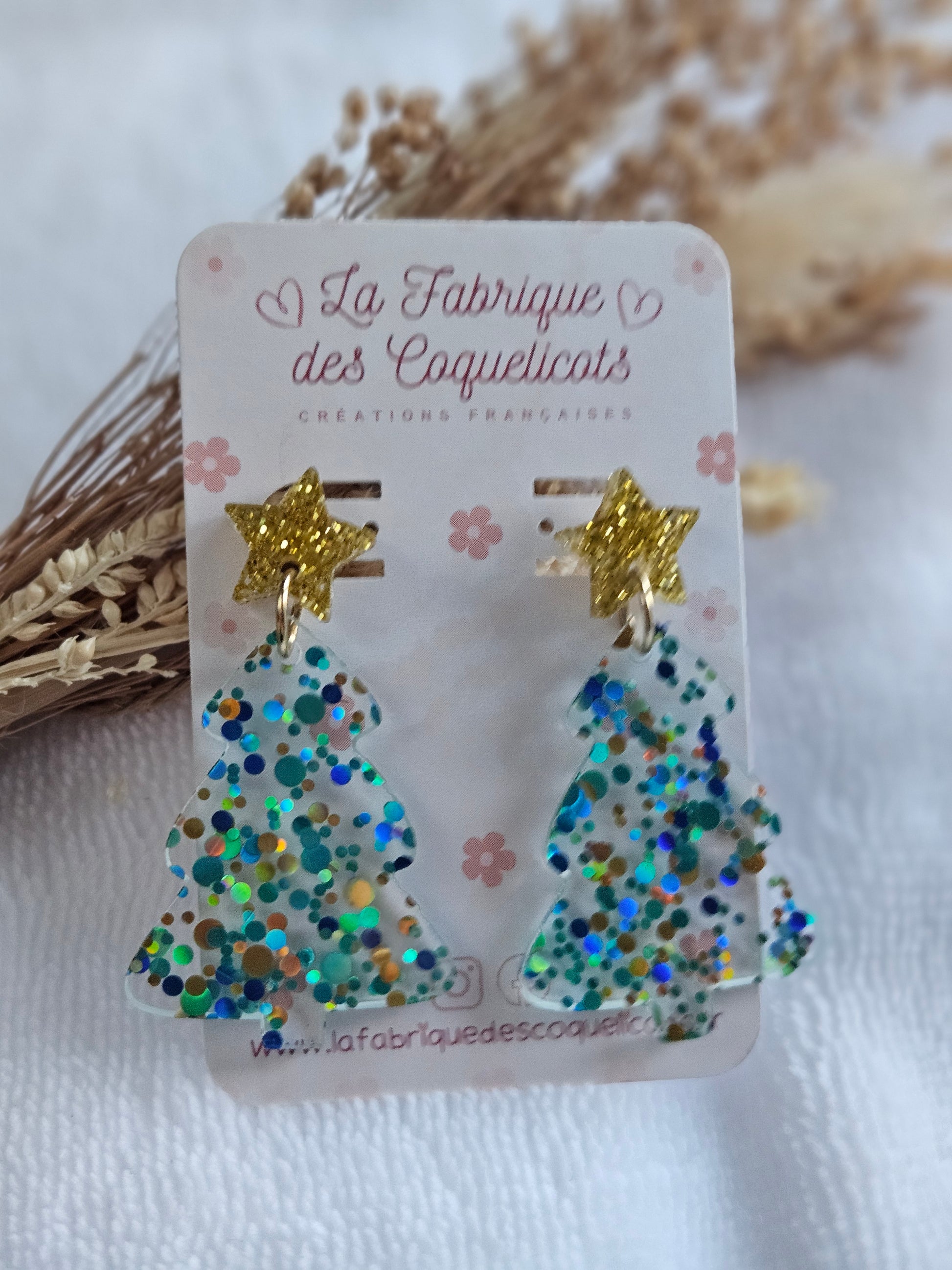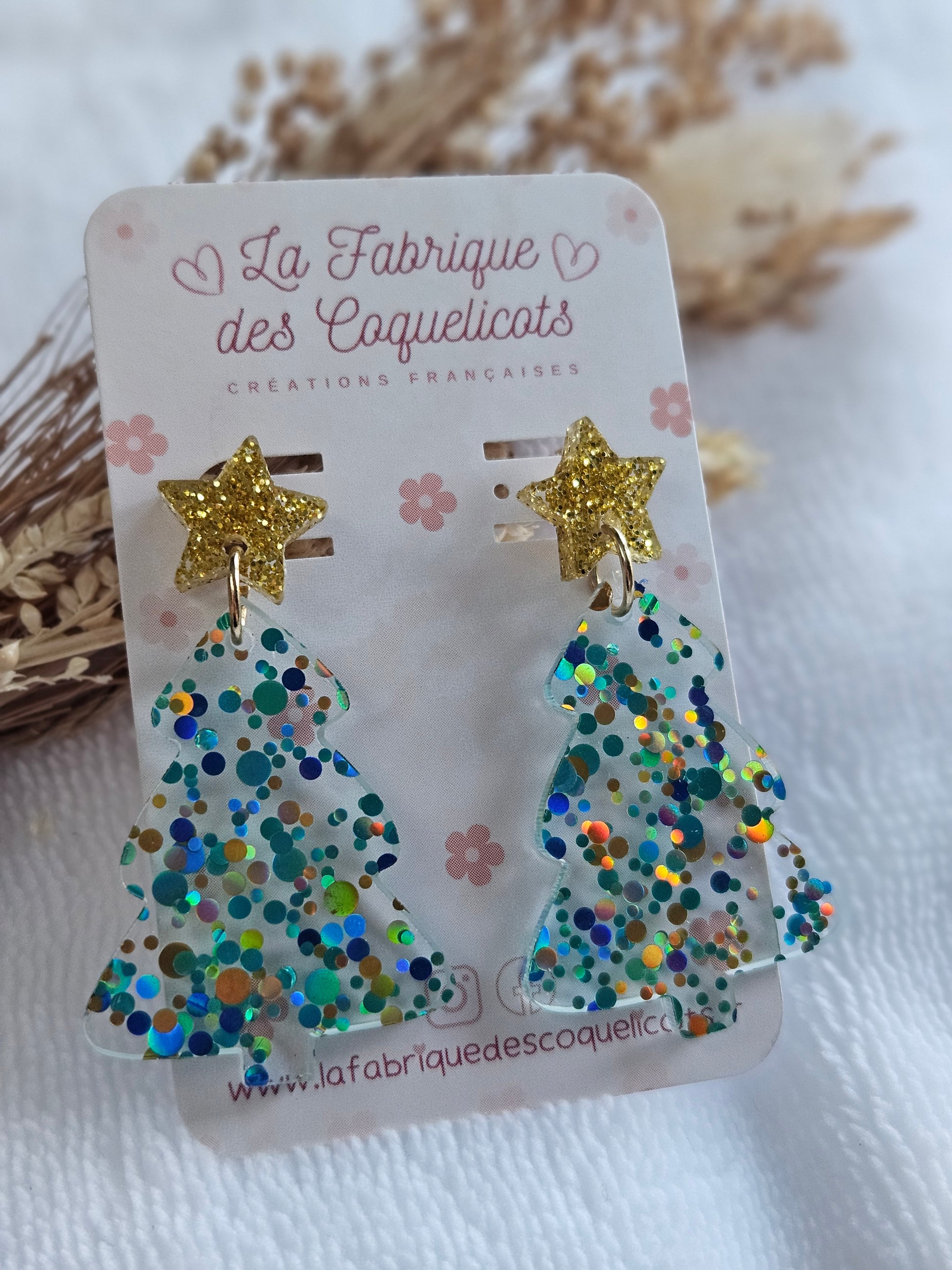 Boucles d'oreilles - Collection Noël "Let it Shine" - Sapin multi vert et Etoile doré