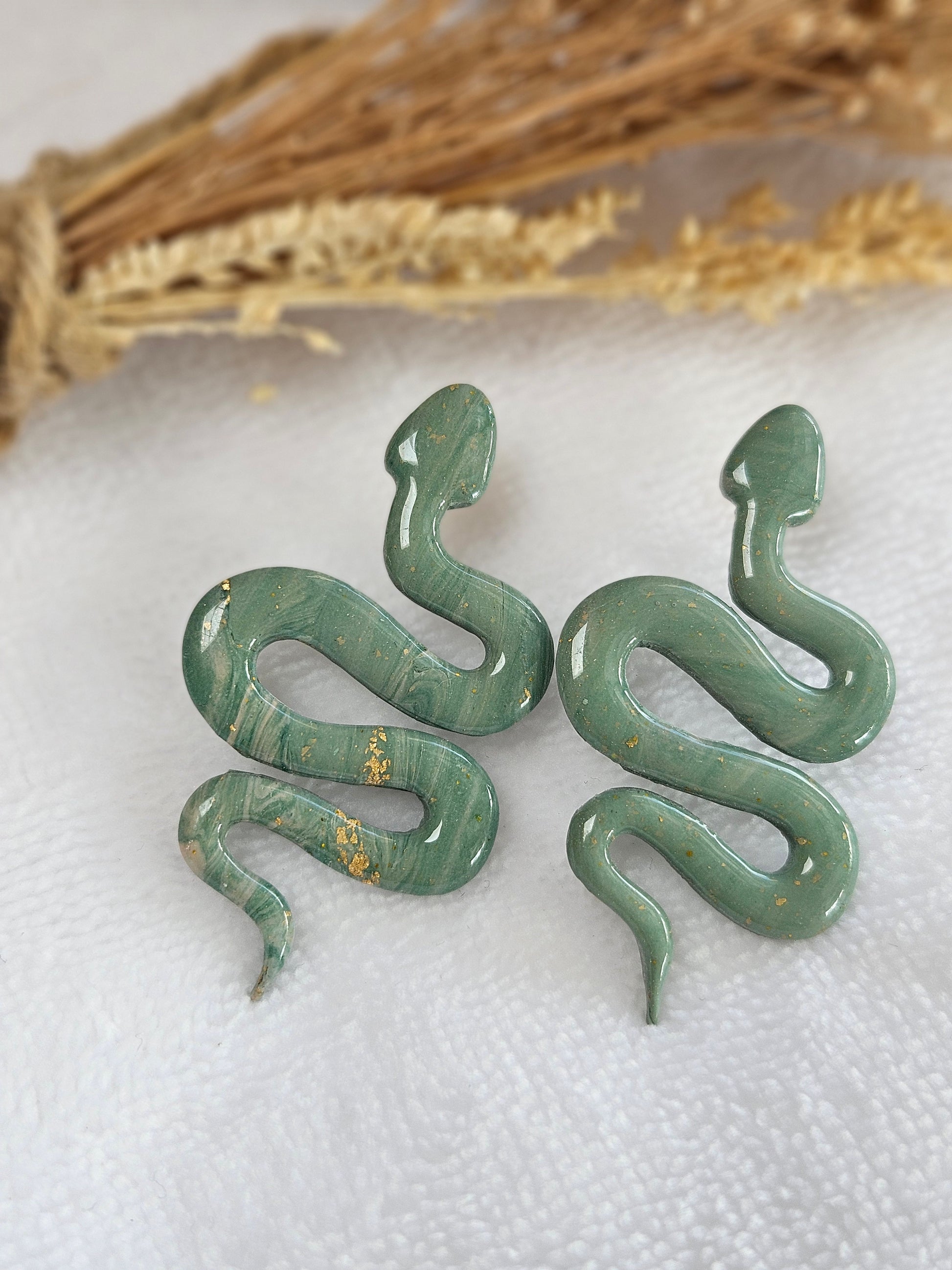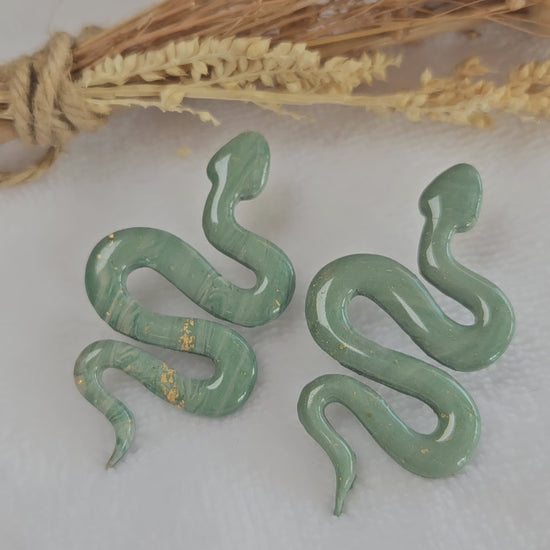 Boucles d'oreilles - SNAKE - SERPENT - VERT NACRÉ VERT ET OR