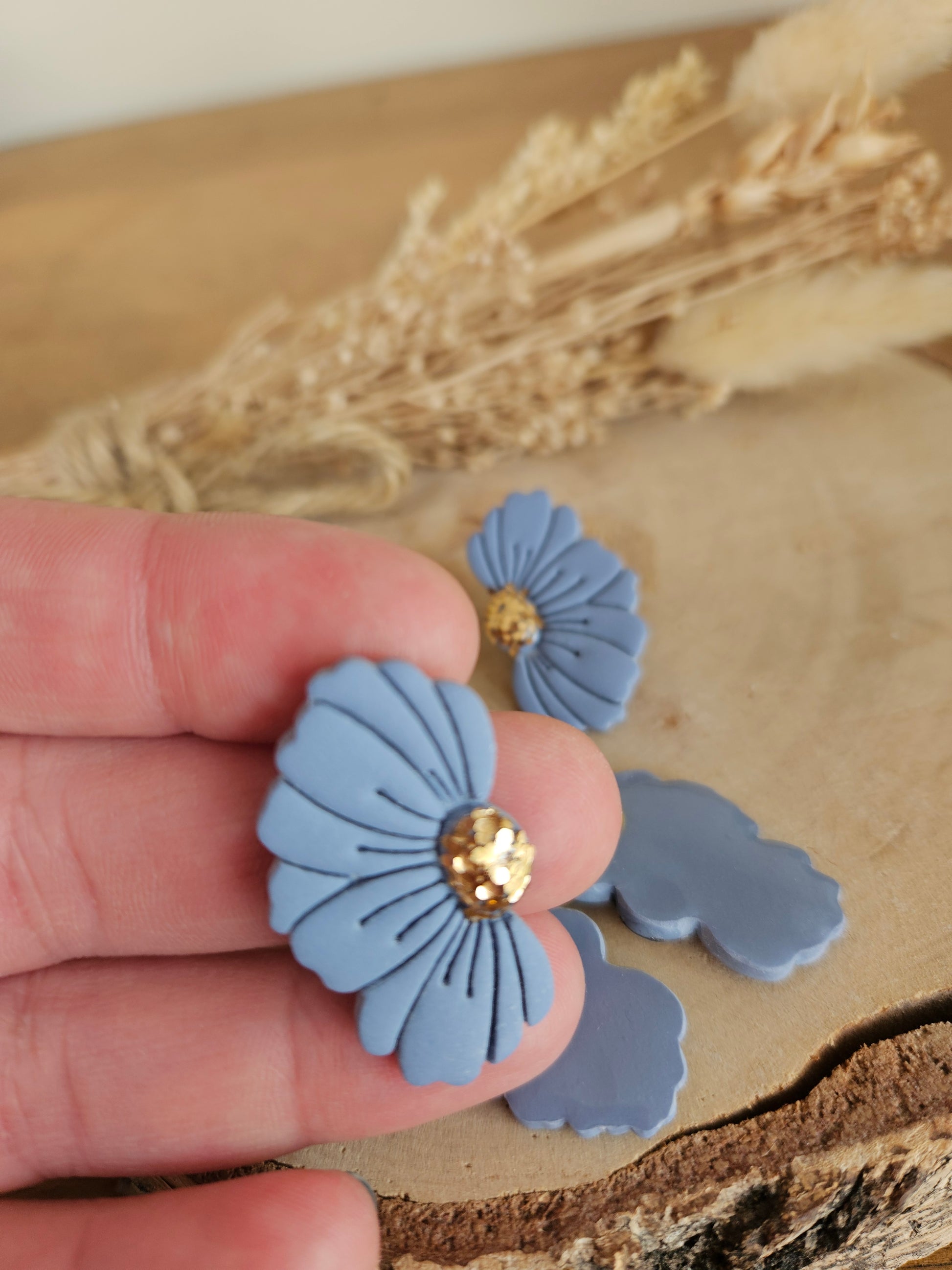 Boucles oreilles GABI FLEUR / femme en Acier Inoxydable - BLEU PIERRE