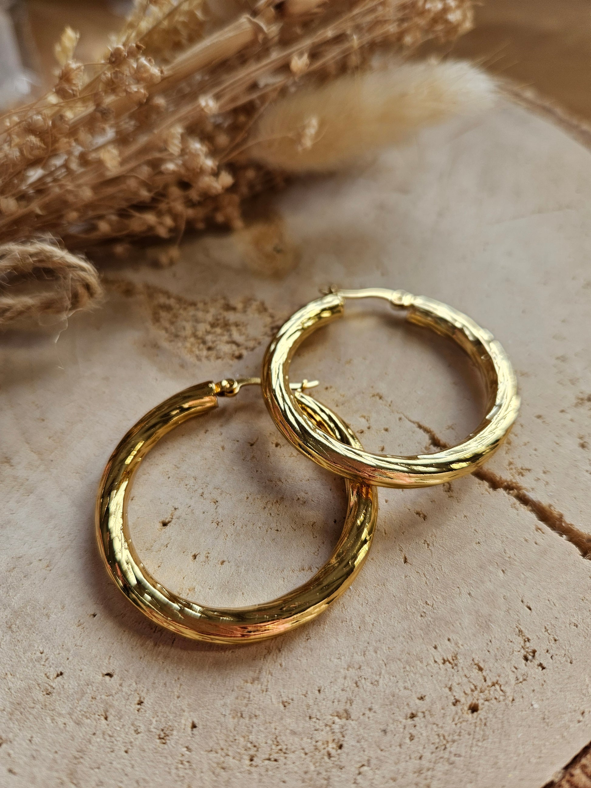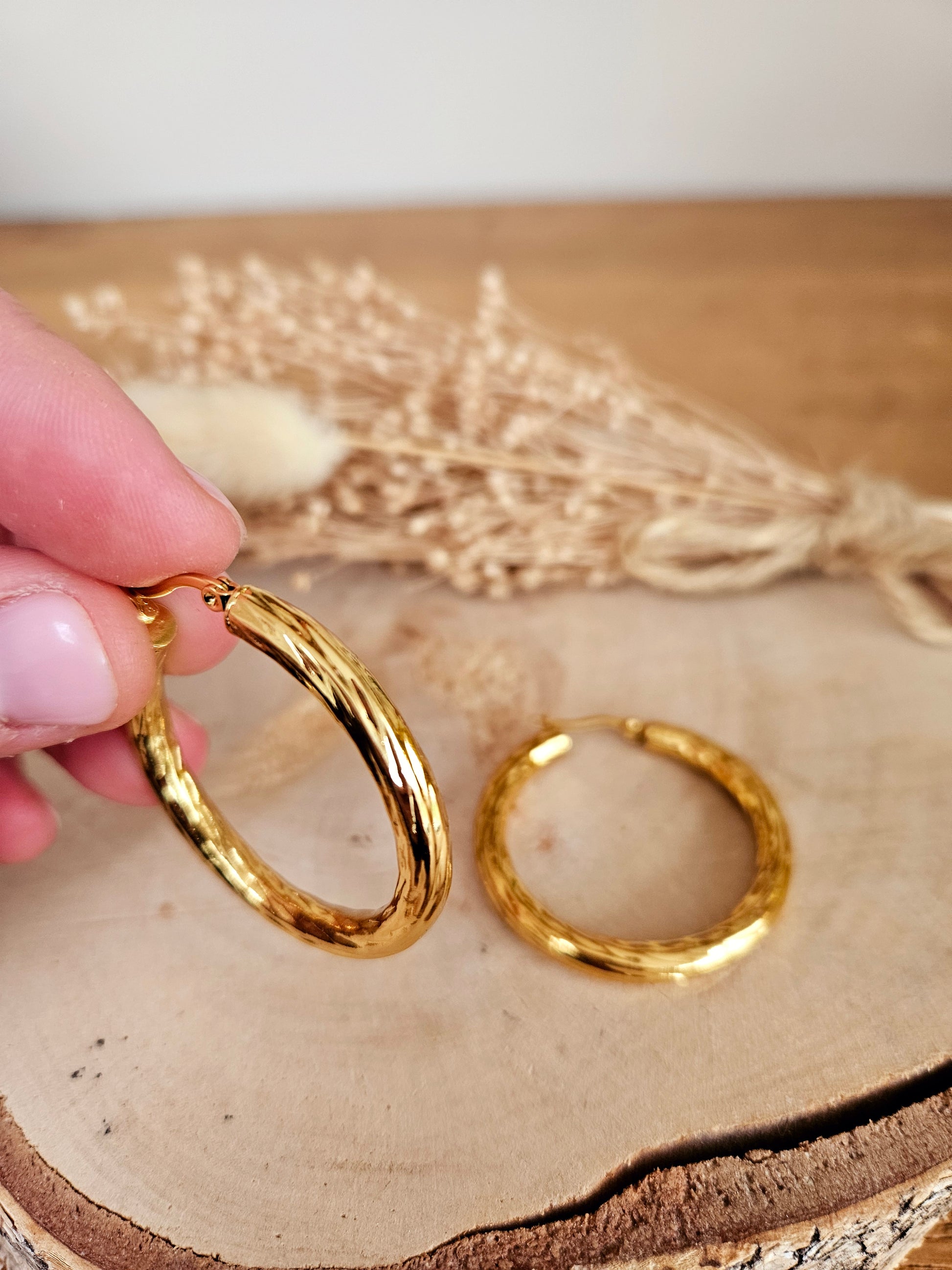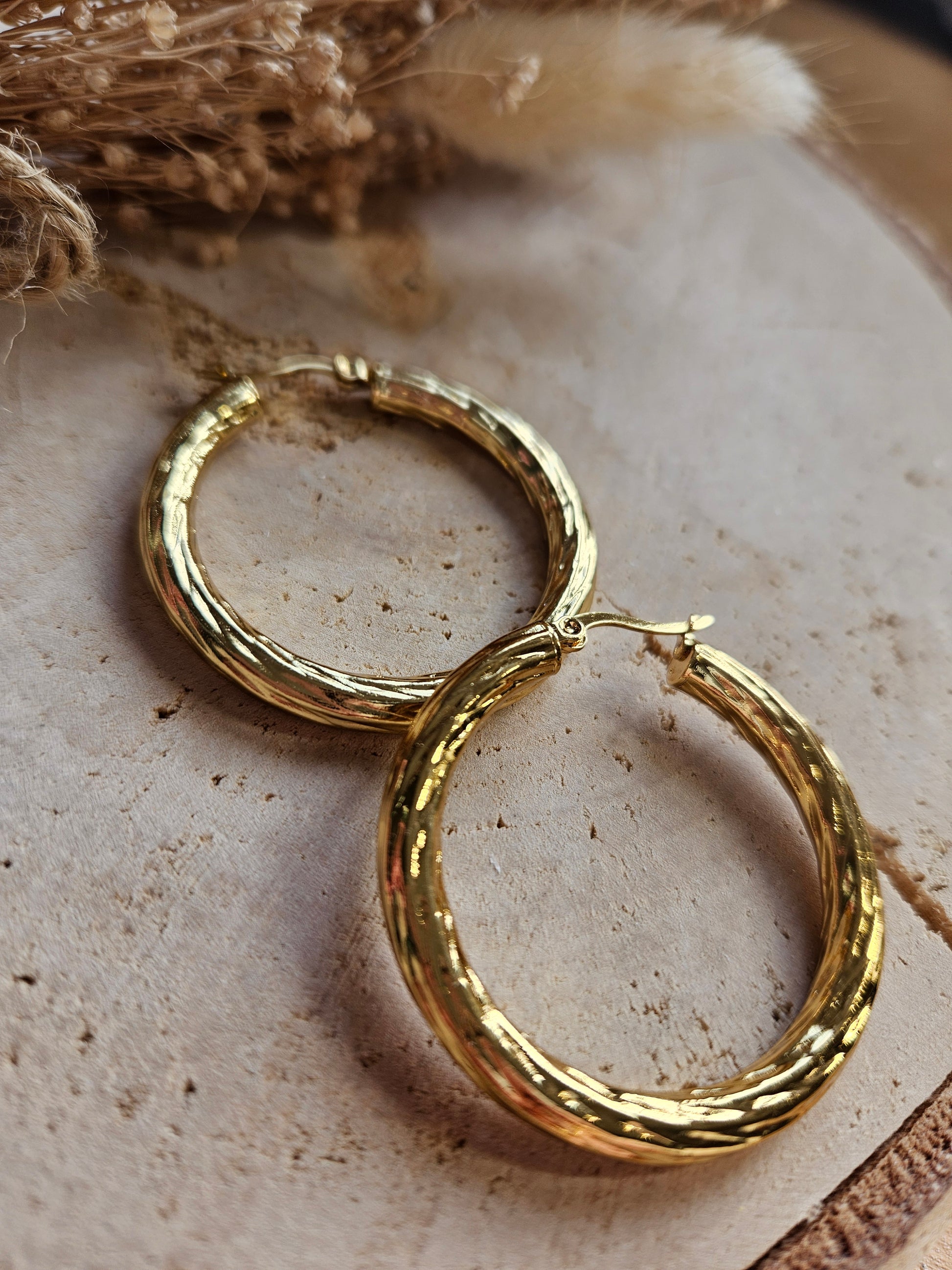 Boucles oreilles MAXI CREOLE martelée doré - Acier inoxydable