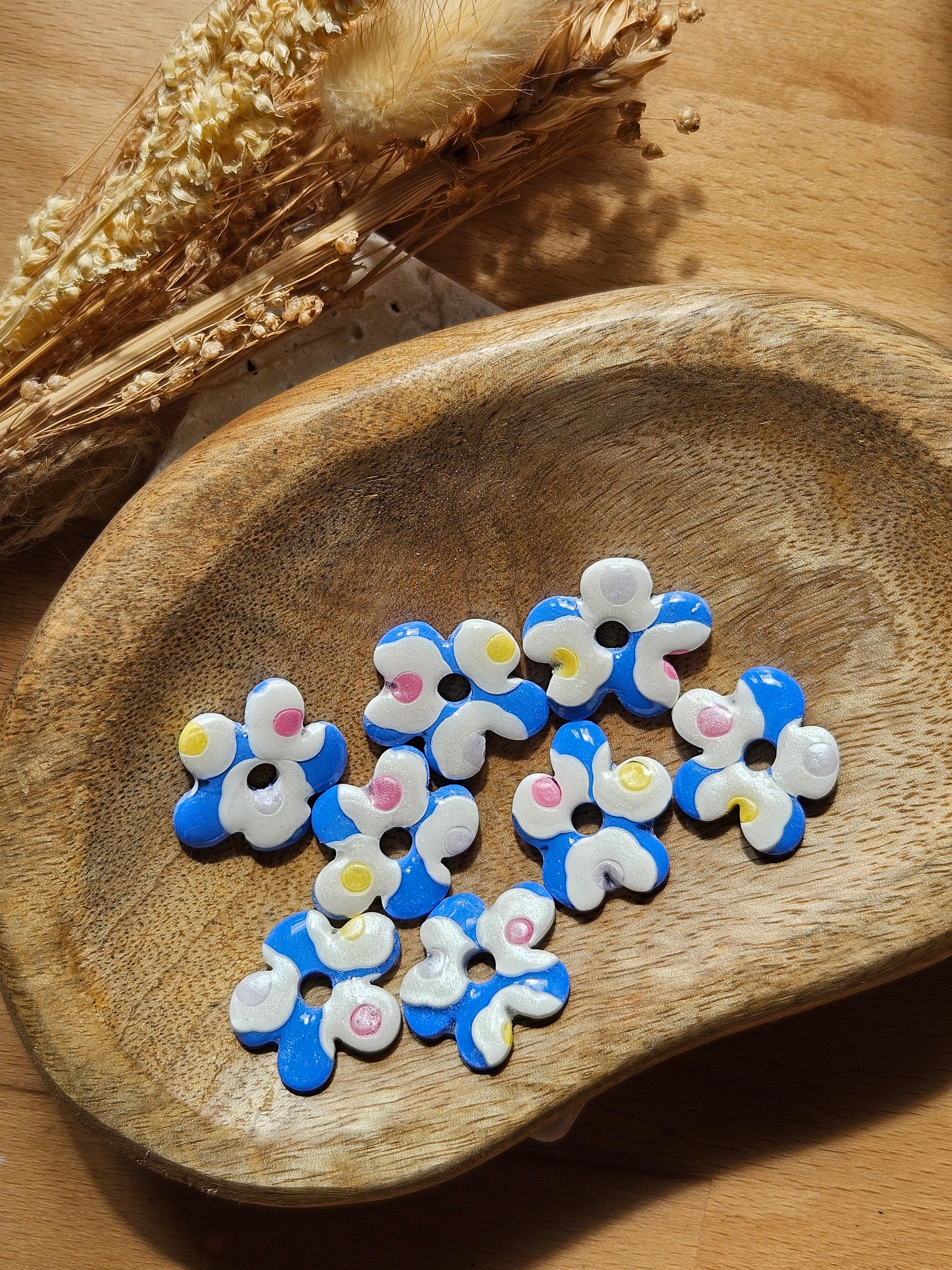 Pampilles interchangeables - par 2 - GEORGETTE - COLLECTION SUMMER - BLEU MOTIF REVERSIBLE