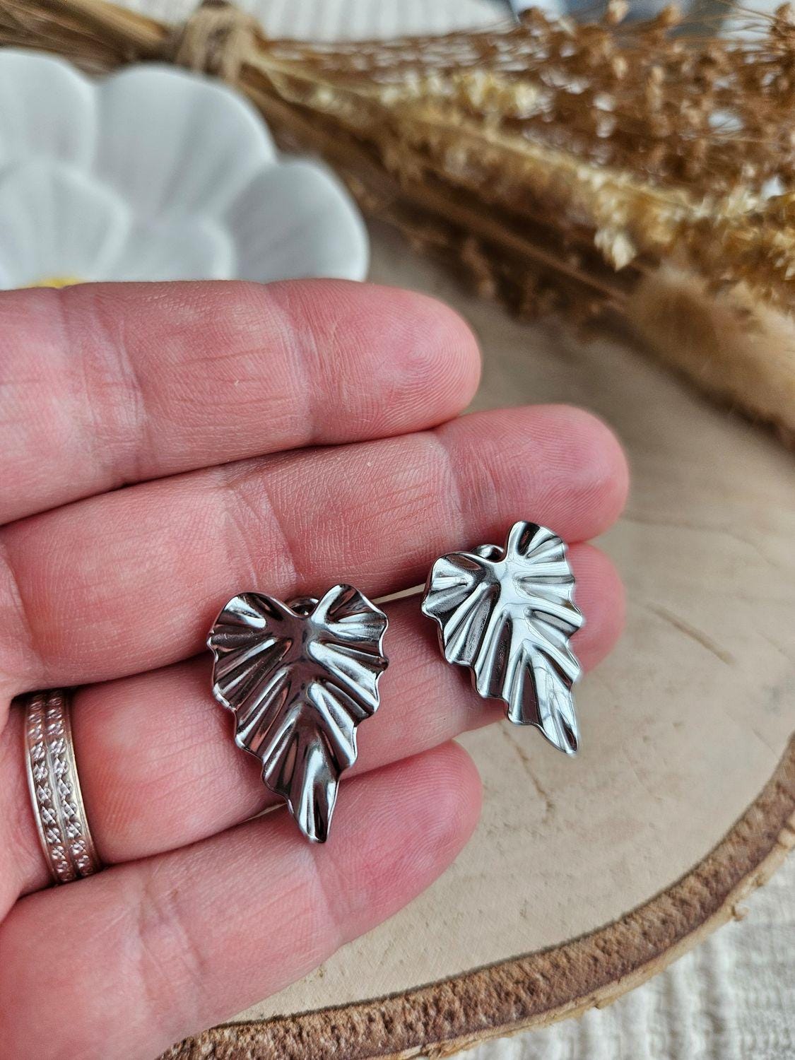 Boucles oreilles LEAF ARGENTÉ - boucle oreille puce doré chat / enfant femme en Acier Inoxydable pour femme Enfant / feuille argenté