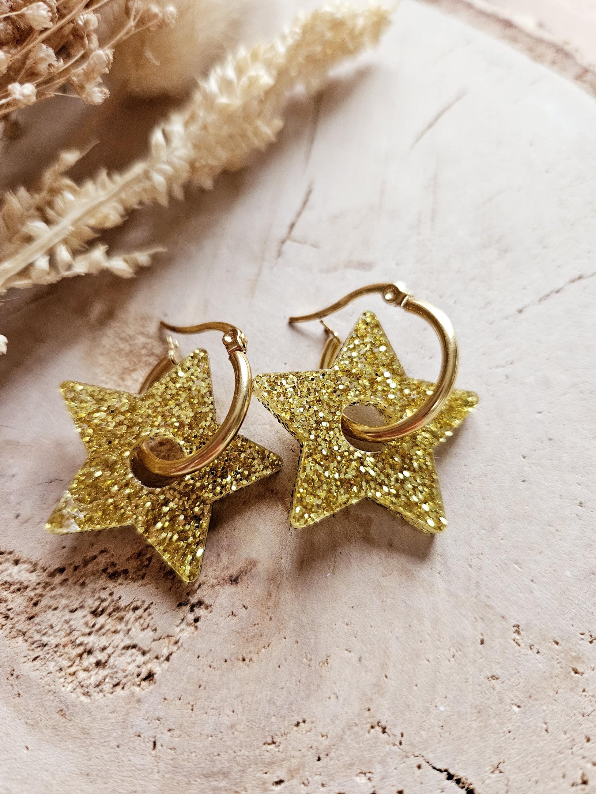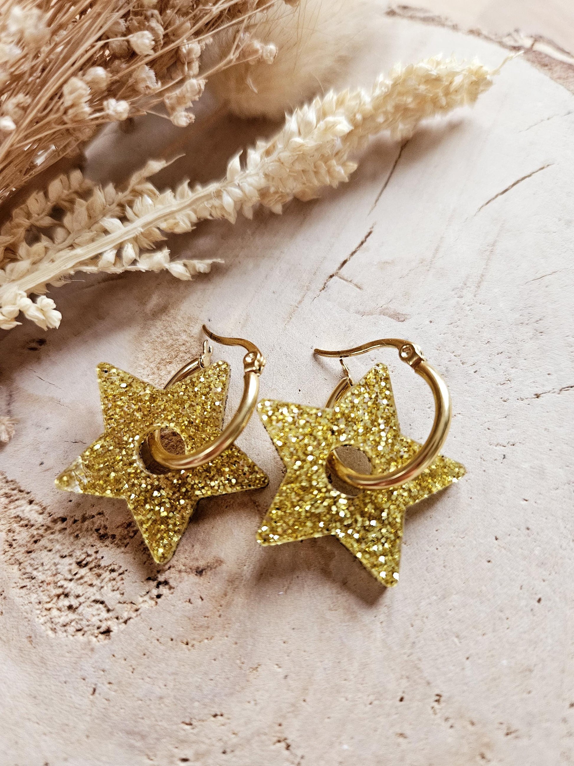 Pampilles interchangeables - par 2 - STAR - Or pailleté