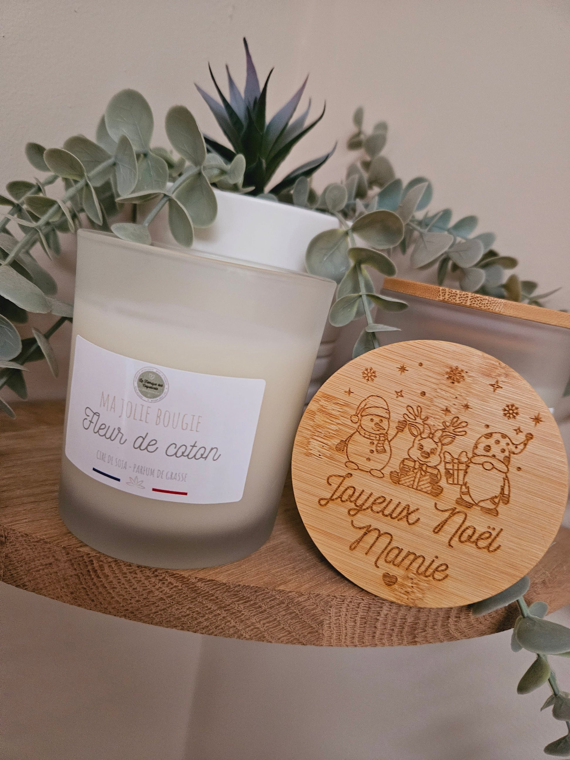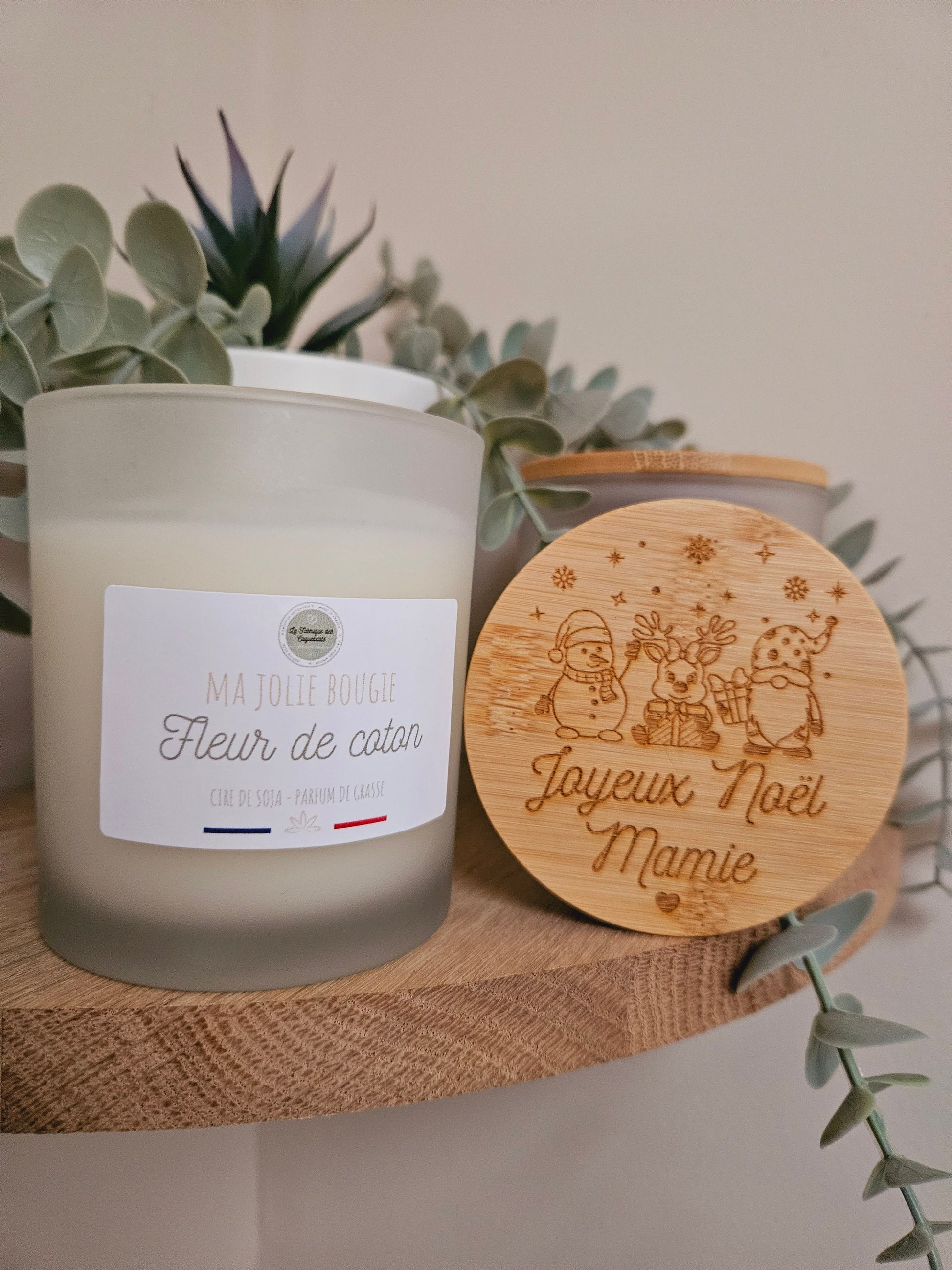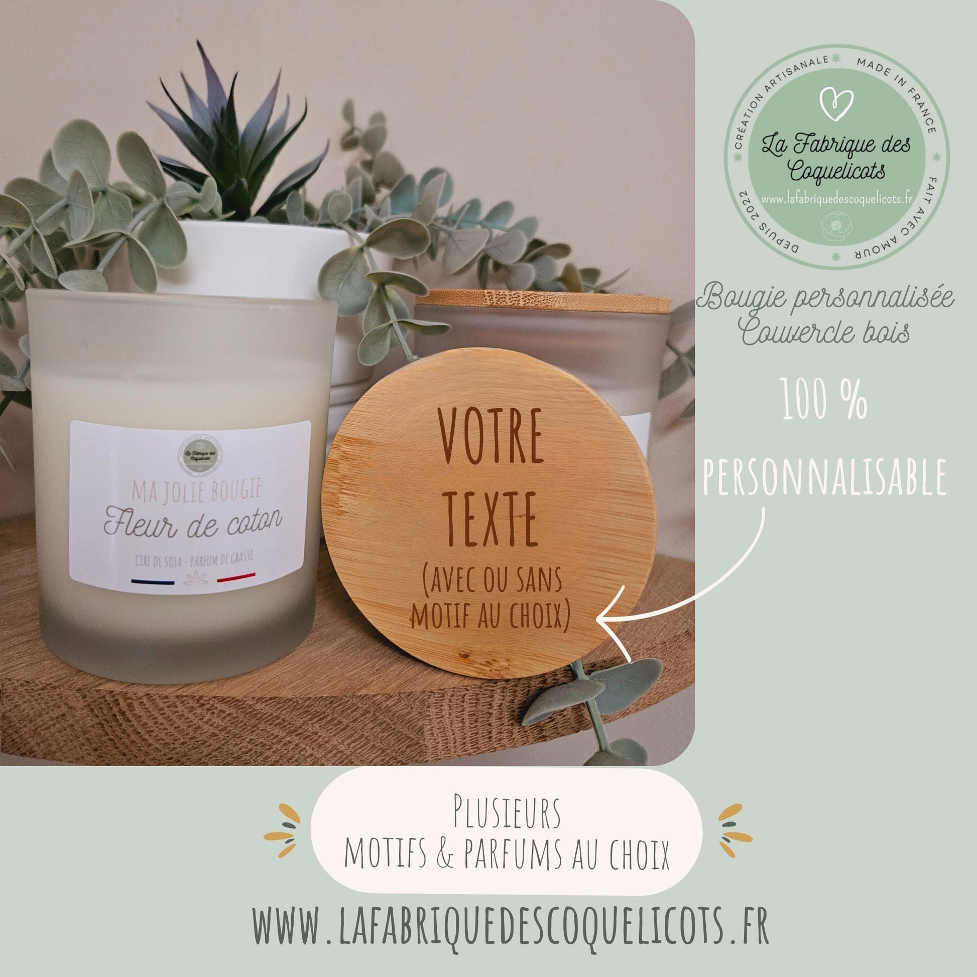 Bougie personnaliséE - couvercle bois - gravure - personnalisé - maitresse mamie nounou maman cadeau femme