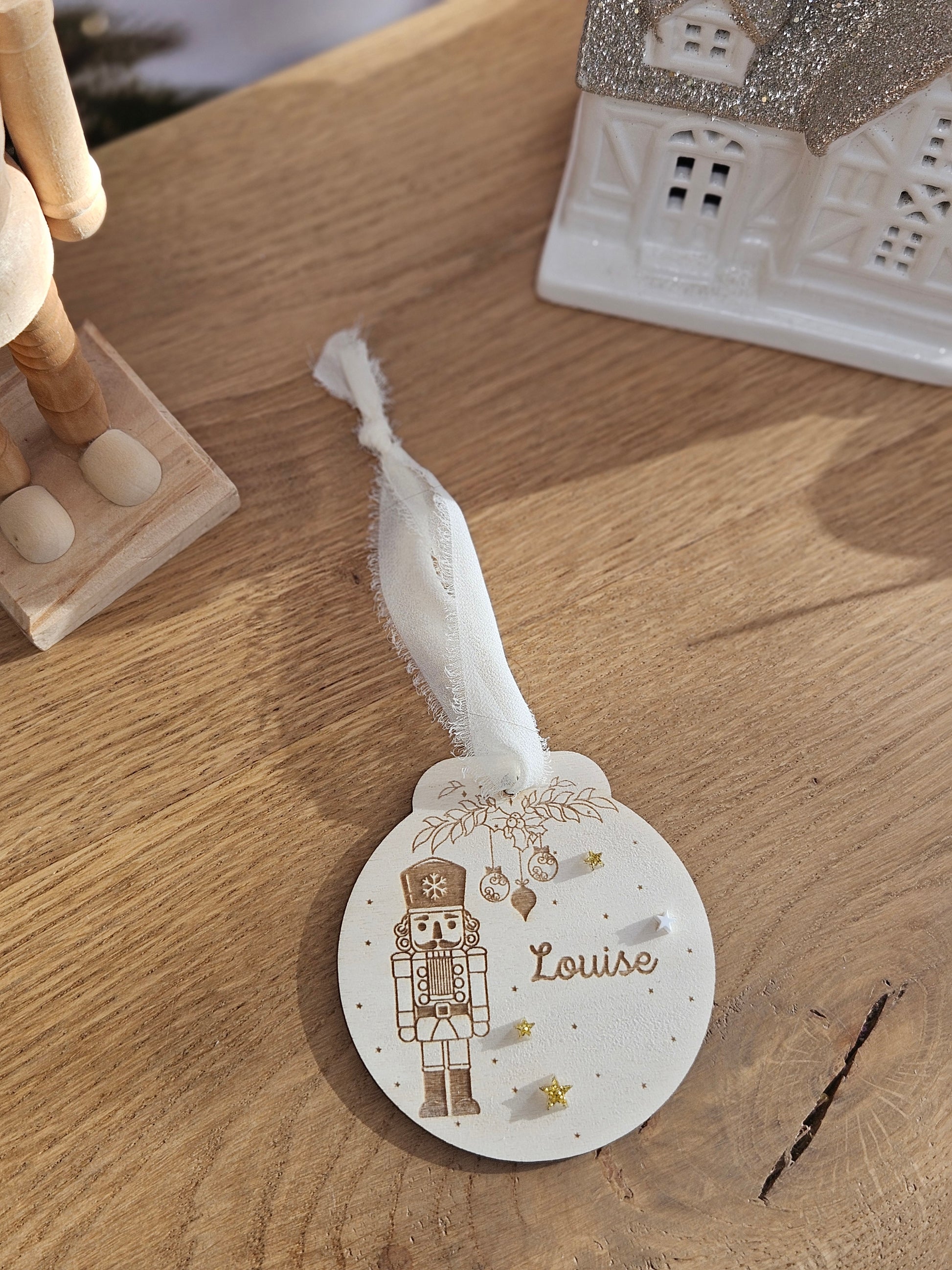Boule de Noël personnalisée | casse noisette et étoiles