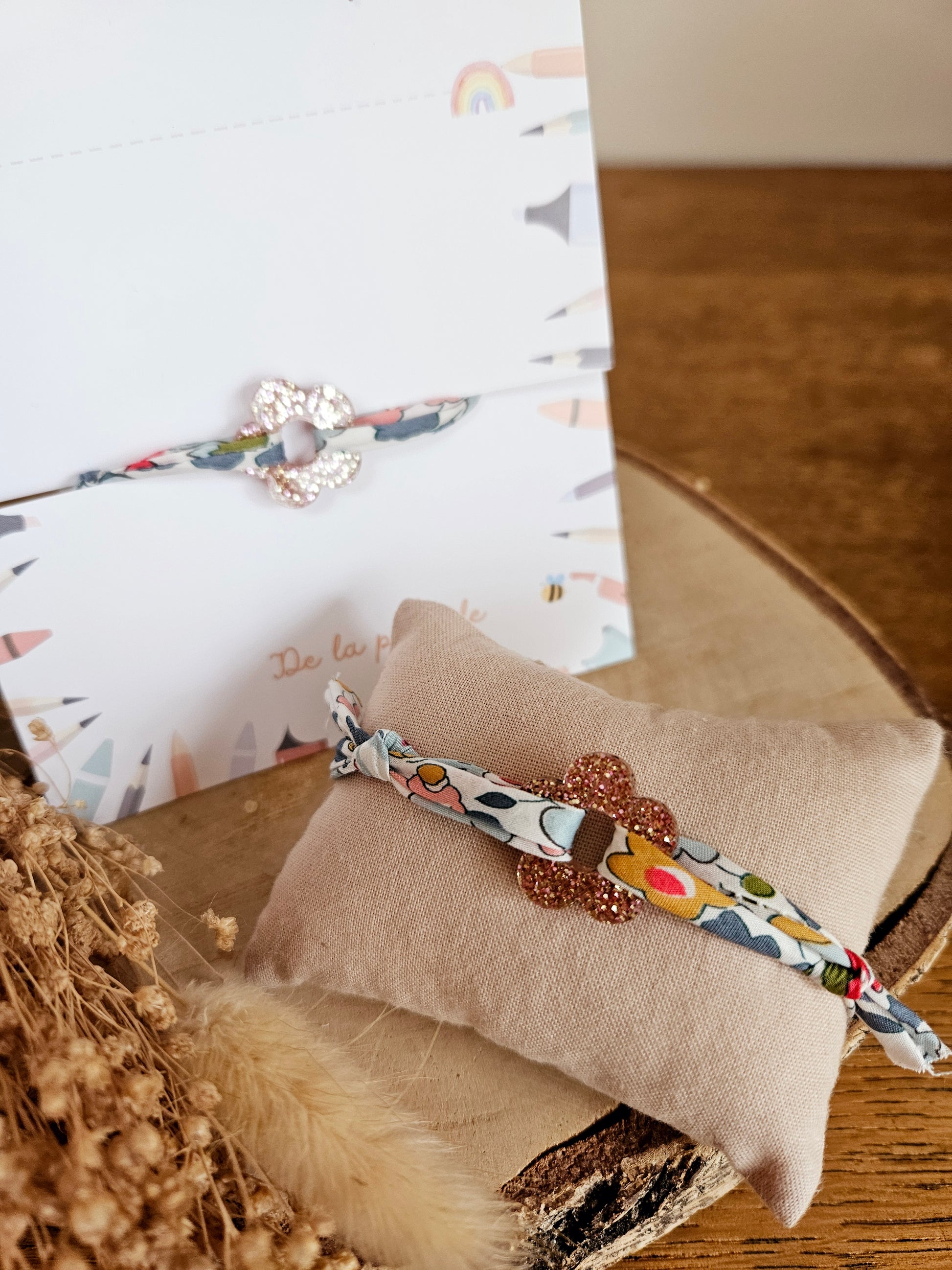 Bracelet liberty marguerite / carte MERCI /cadeau fin année - cadeau maitresse atsem école cadeau enfant