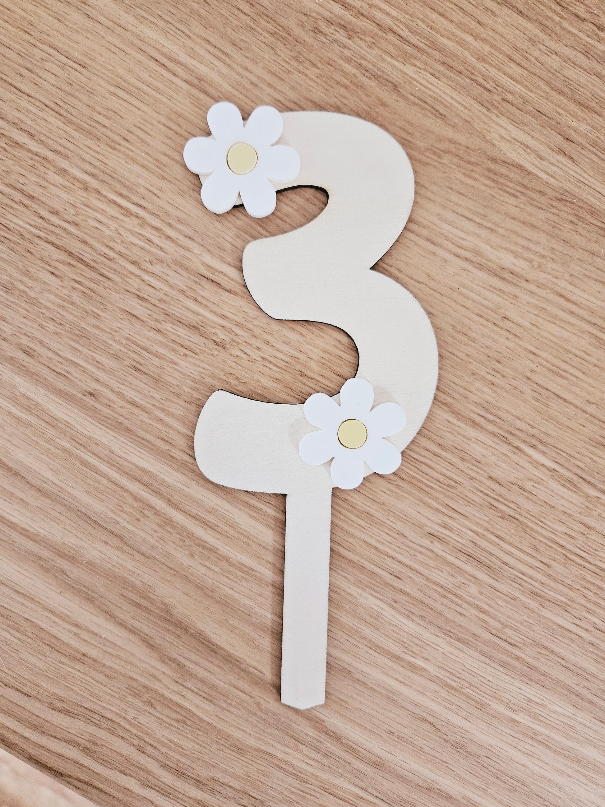 Cake topper chiffre / décoration gâteau anniversaire, baptême mariage thème fleur marguerite pâquerette
