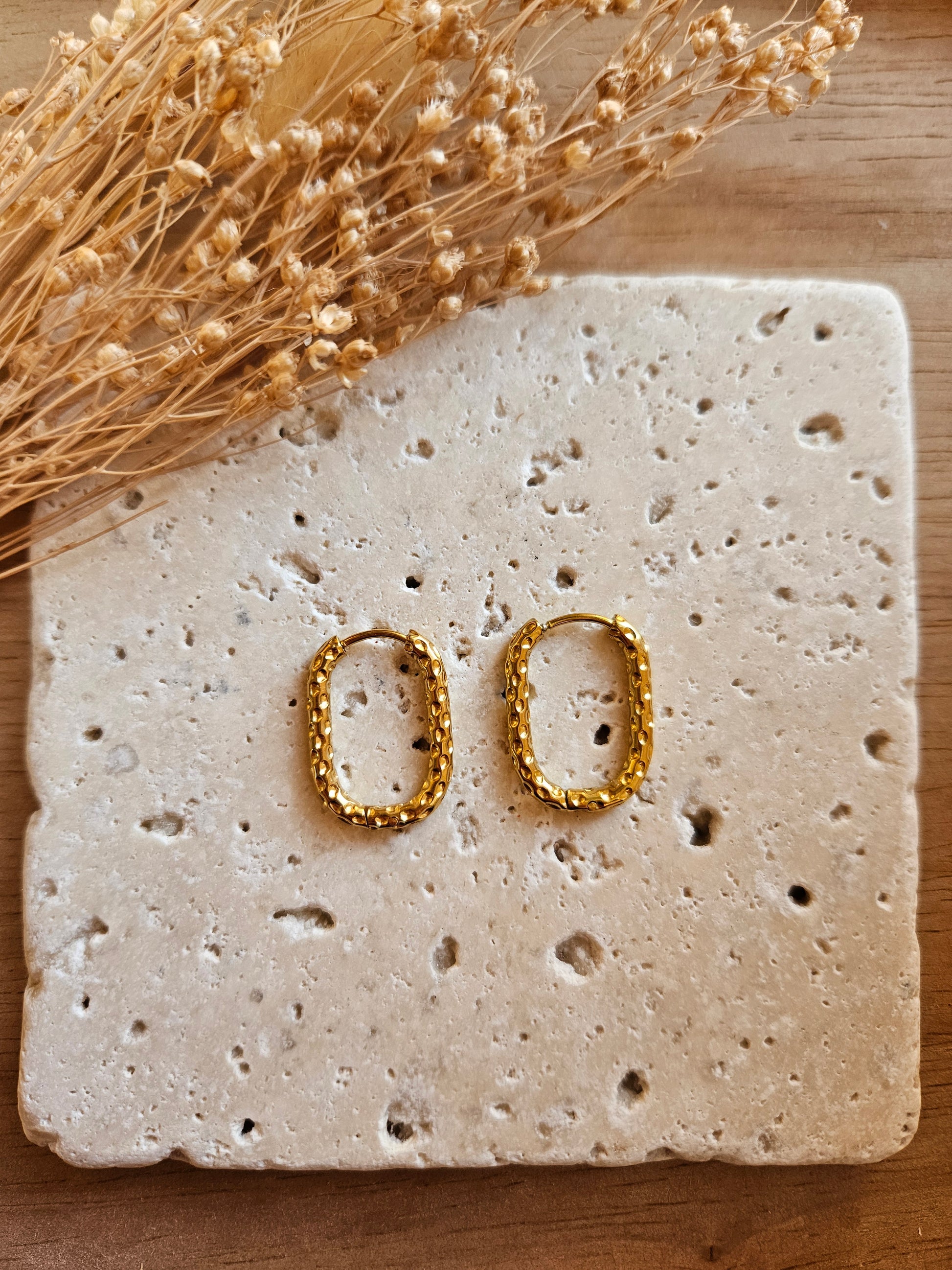 ❥ RECTANGLES ARRONDIES MARTELÉES : 21.5 X 16 MM- INTÉRIEUR 10MM PIN 1MM