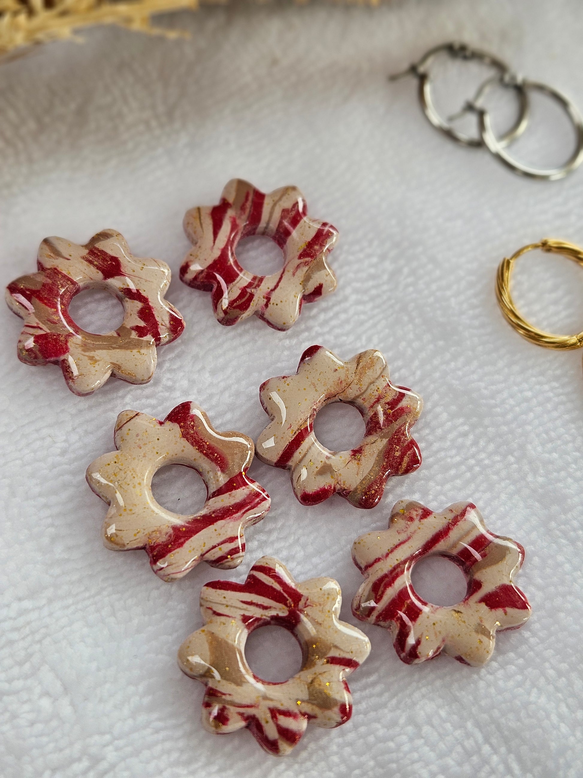 Pampilles interchangeables - par 2 - Collection Noël "Let it Shine" - LISETTE - ROUGE ET IVOIRE MARBRÉ