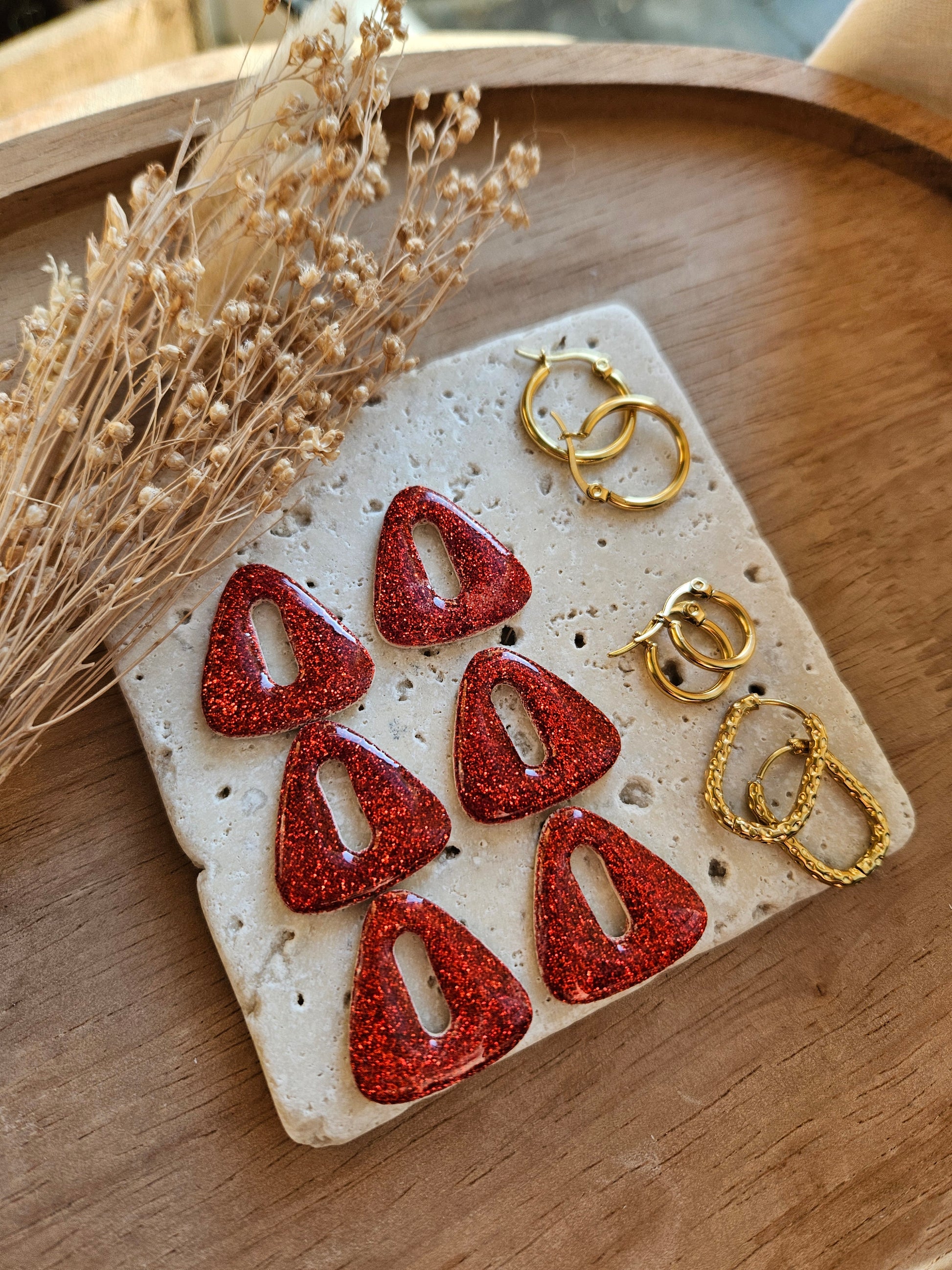 Pampilles interchangeables - par 2 - Collection Noël "Let it Shine" - SIMONE - BEIGE/ ROUGE PAILLETTE