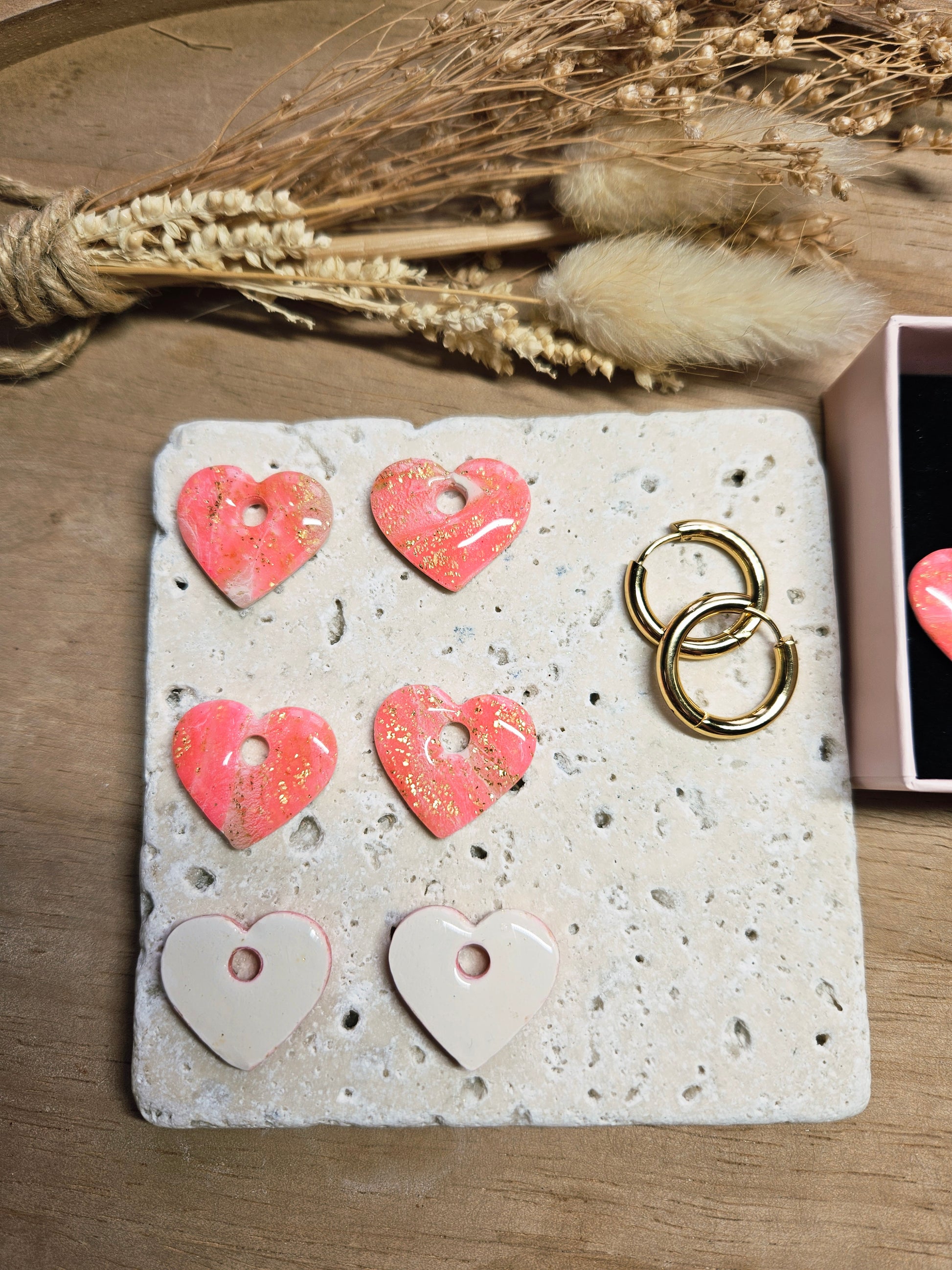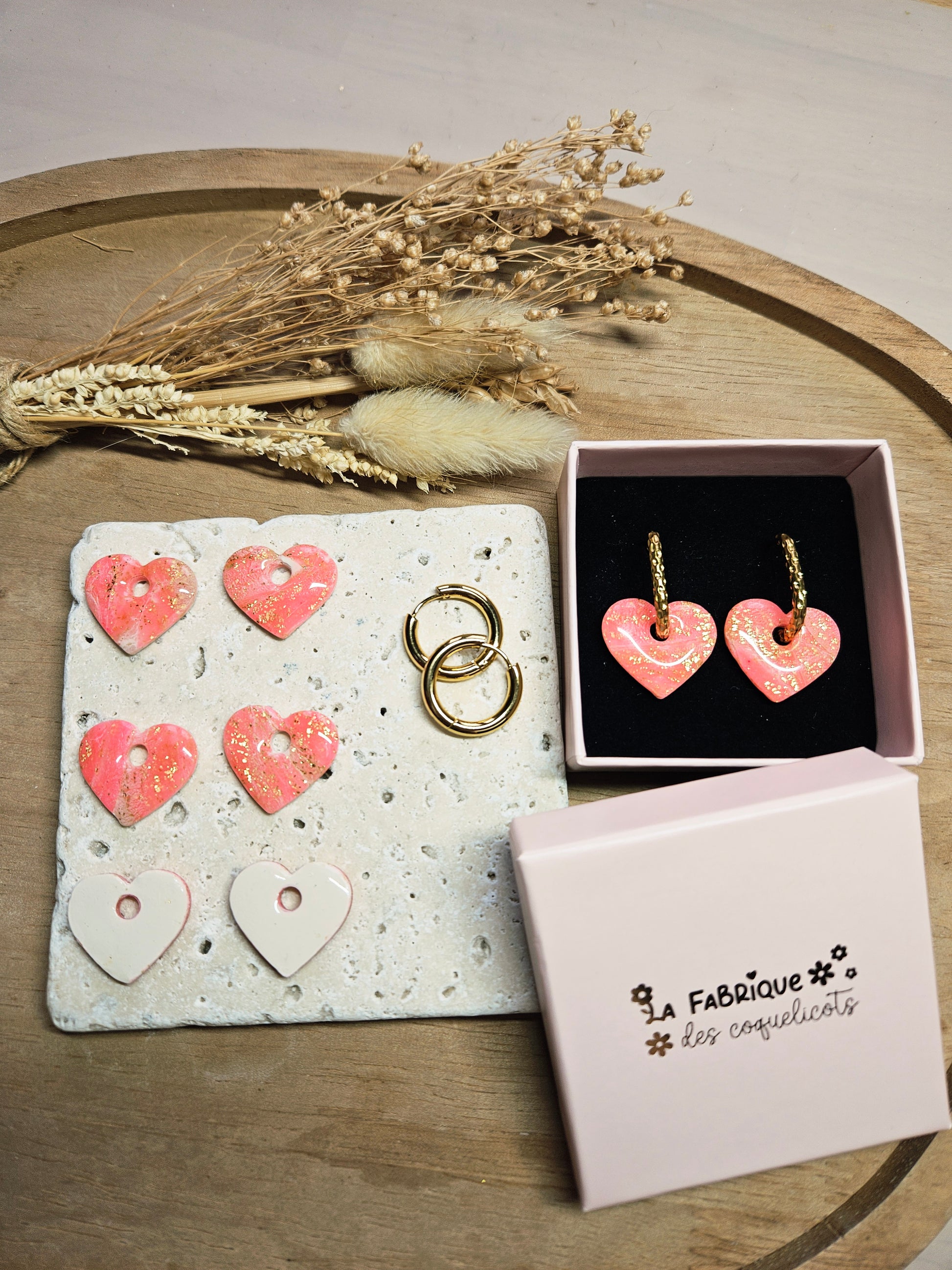 Pampilles interchangeables - par 2 - Collection SAINT VALENTIN - MARGOT - ROSE & OR