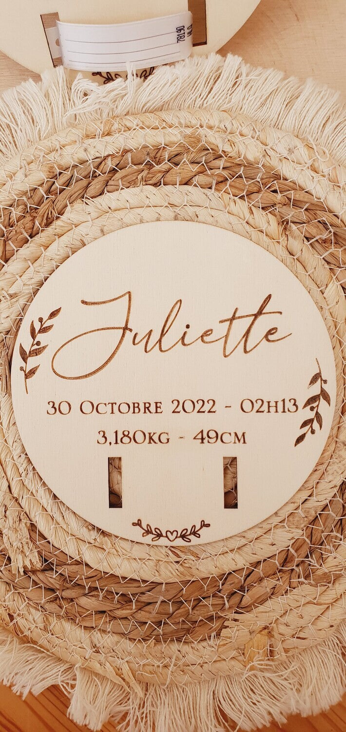 Plaque de naissance pour bracelet | cadeau de naissance | carte bienvenue bébé | naissance | plaque bois | personnalisé