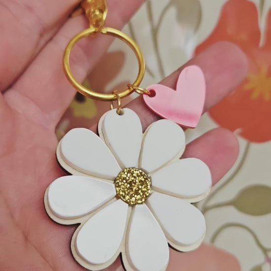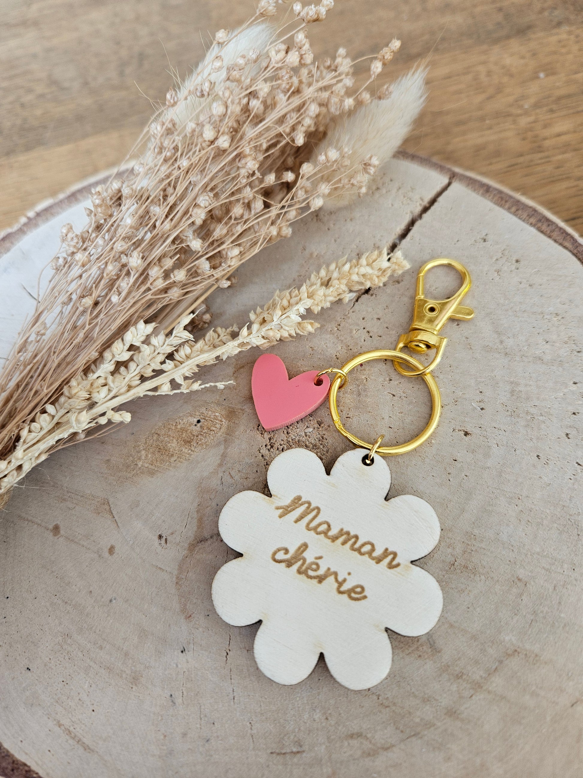 Porte clé bois ET PLEXI MARGEURITE COEUR / maman mamie maîtresse atsem cadeau femme
