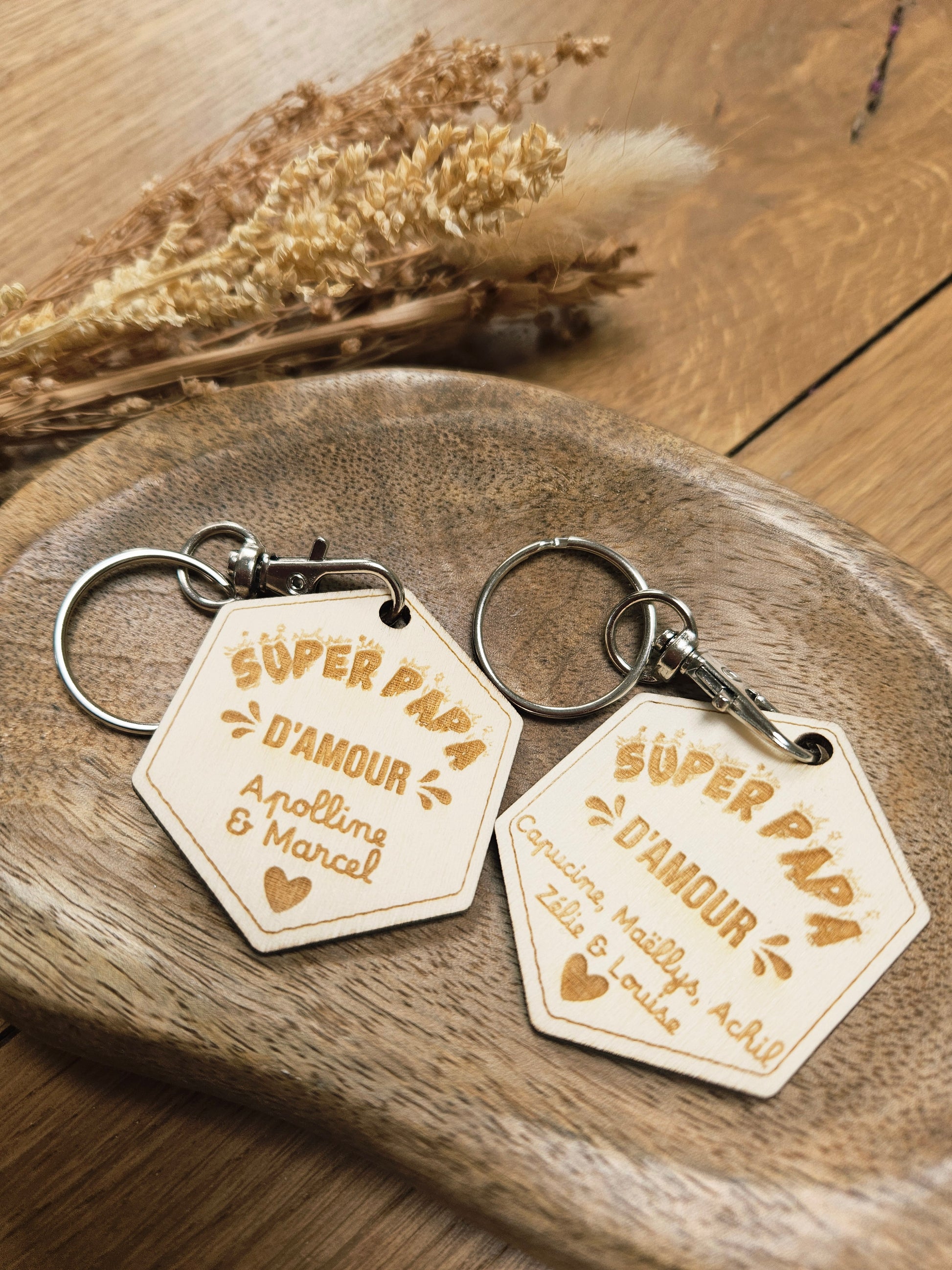 PORTE CLÉ BOISHEXAGONE PAPA