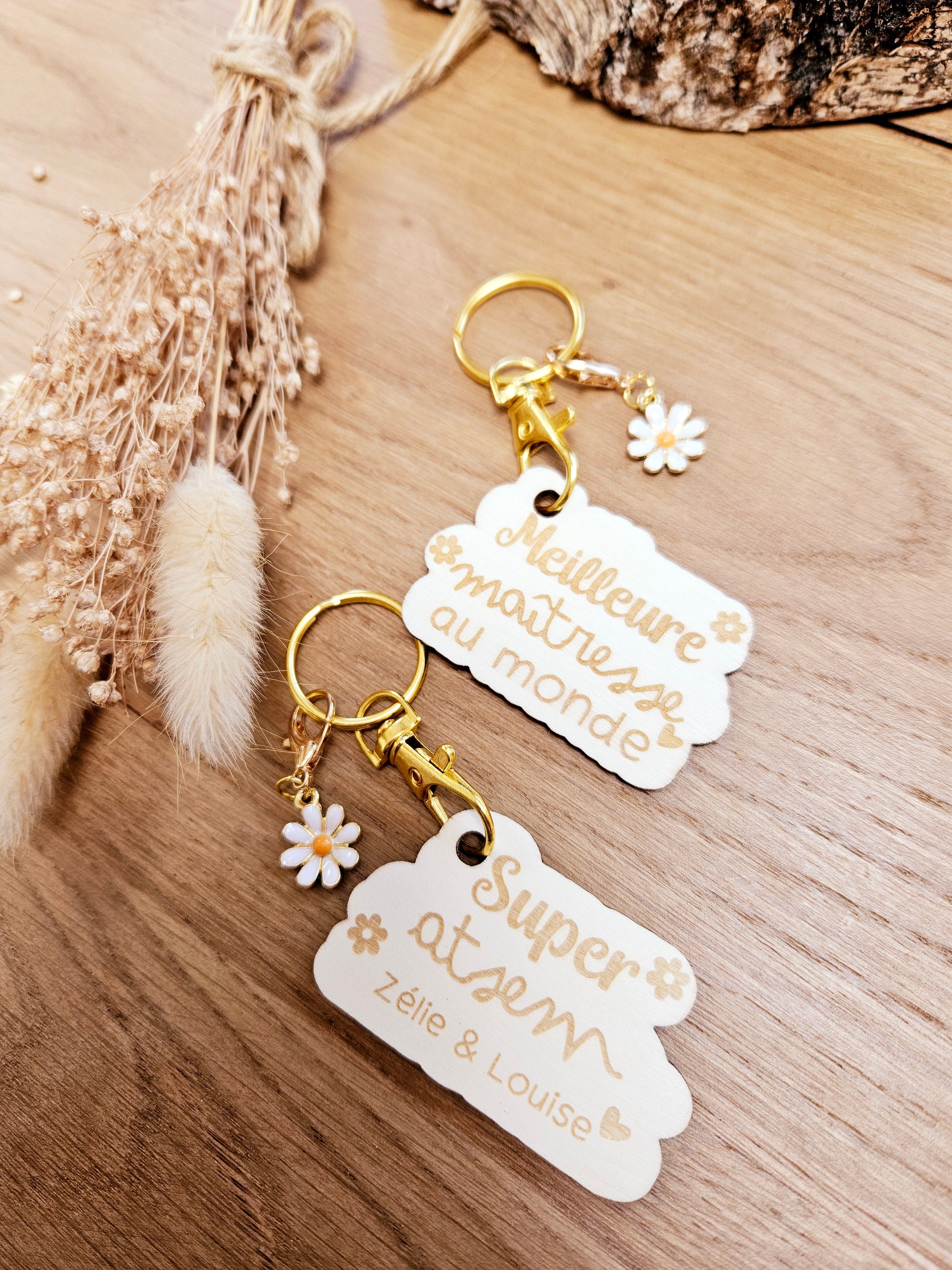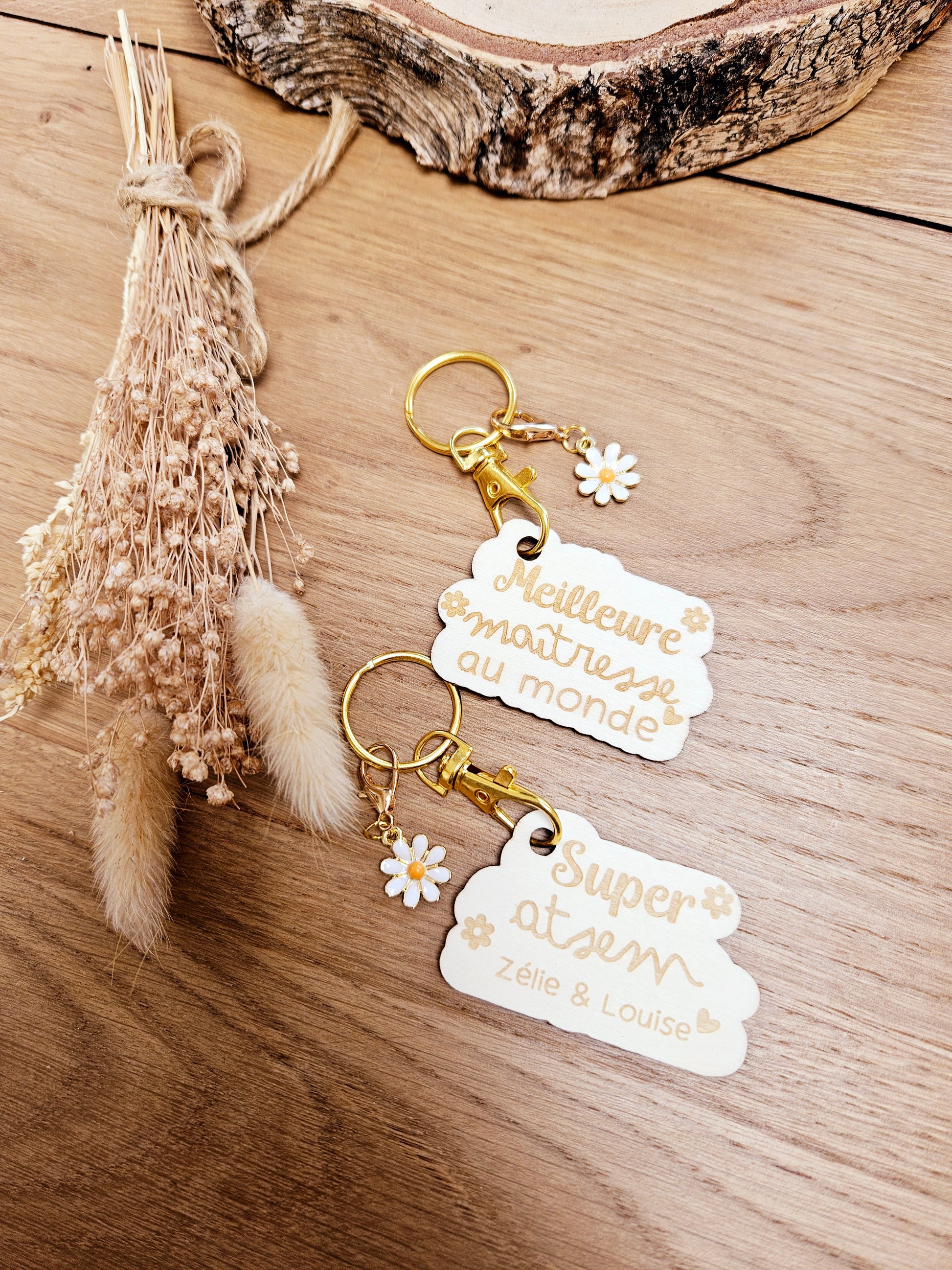 Porte clé marguerite / fin année scolaire personnalisé | cadeau personnalisé |maîtresse - atsem - nounou - maître - maman mamie amie