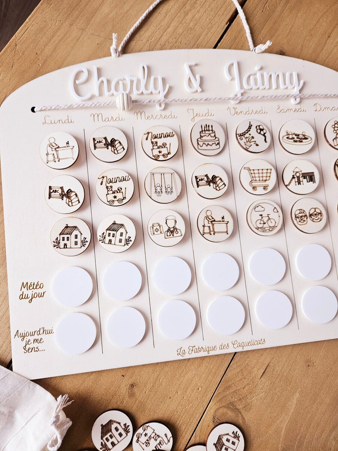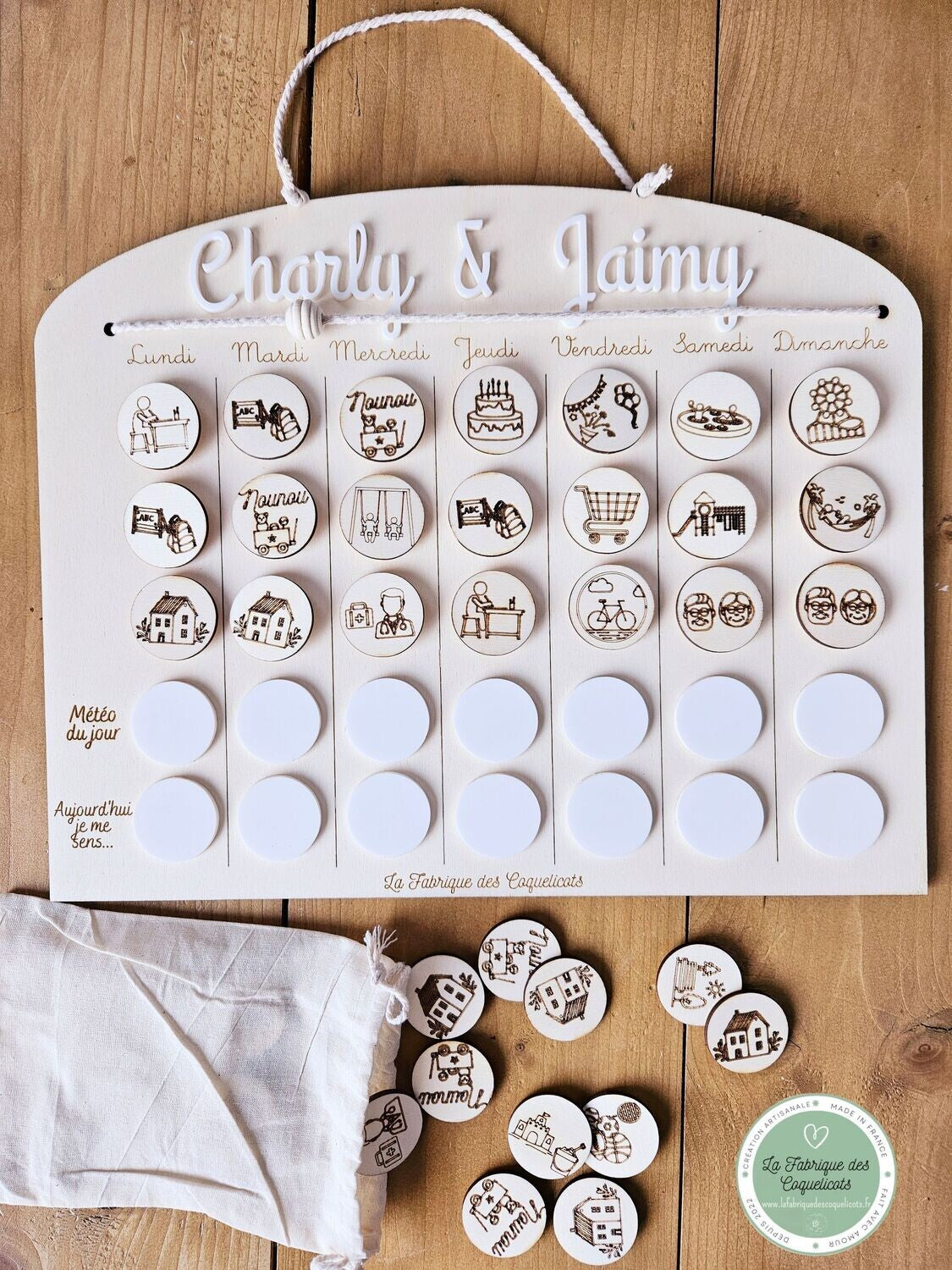Tableau semainier / routine enfant personnalisé avec prénom / a suspendre / Bois